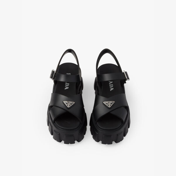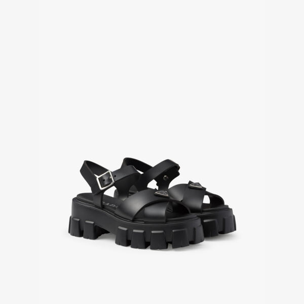 Сандалии Monolith на резиновом каблуке с логотипом Prada, черный