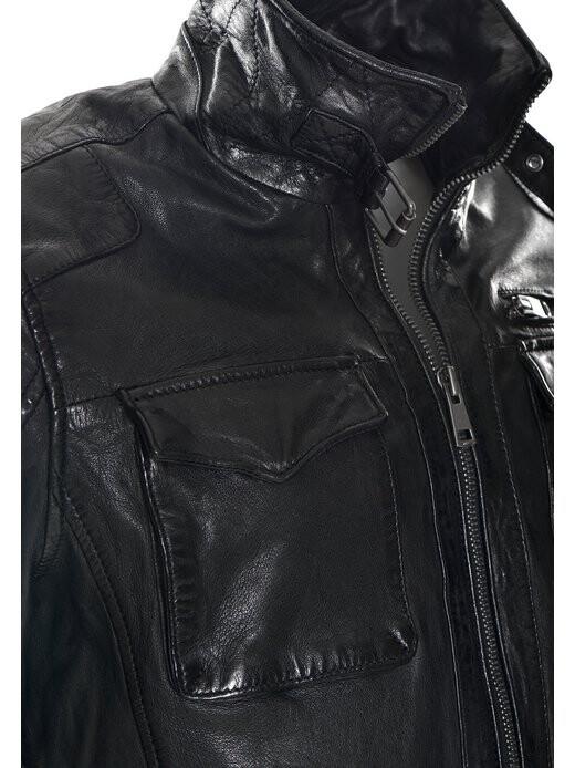 Красивая кожаная куртка от JCC. Куртка застегивается на прямую молнию до воротника рубашки, которая фиксируется трехсторонней регулируемой пряжкой. Имеет два внутренних кармана, один из которых на небольшой молнии, а другой на пуговице. Прямой крой и молния на манжетах обеспечивают удобство ношения. Прямой крой Регулируемая пряжка на воротнике рубашки Прямая молния Три нагрудных кармана, два из них на кнопках Два внутренних кармана: один на молнии, другой на кнопке.