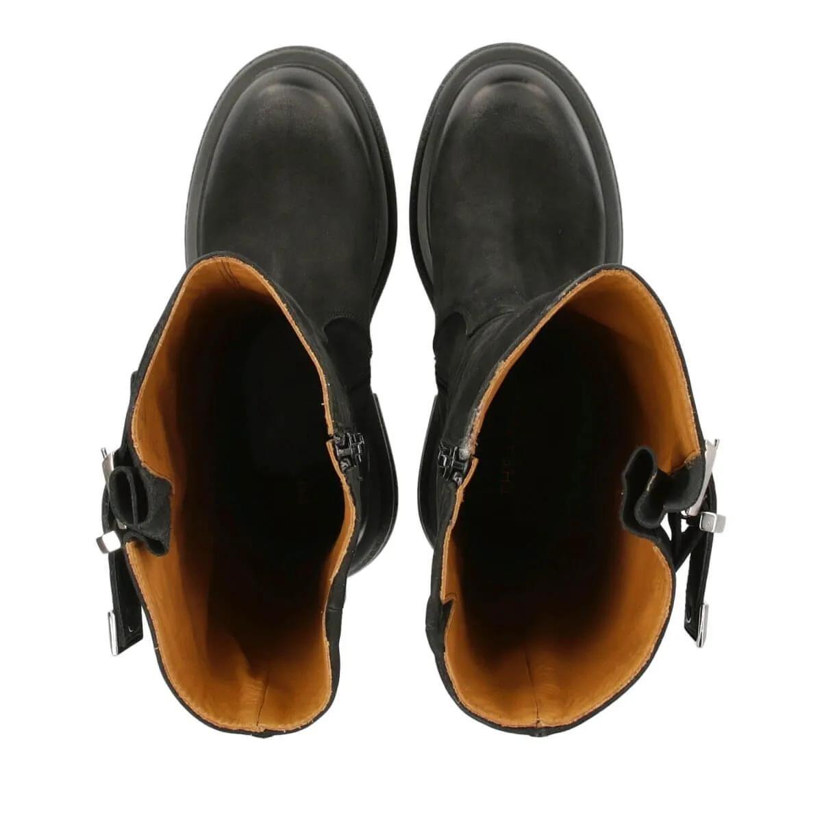 Качественные ботинки простого дизайна с пряжкой на голенище.