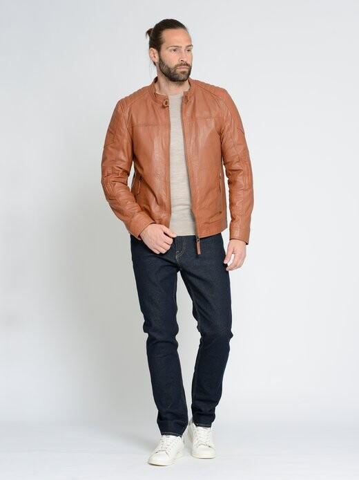Модная мужская кожаная куртка от бренда Maze. Искусно пришитые карманы и рюши на плечах, а также другие детали придают этой куртке особенный вид. Куртка предлагает множество возможных комбинаций.