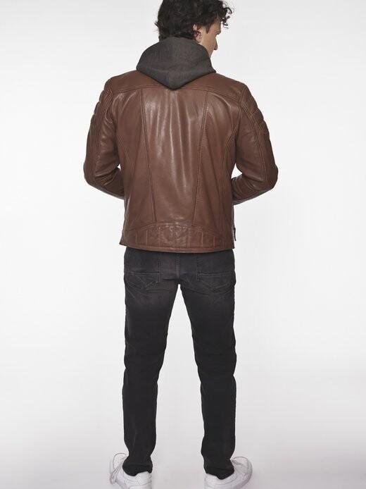 Современная кожаная мужская куртка от модного бренда Mustang. Кожа куртки прокрашена насквозь, что создает приятный вид поношенной кожи. Застегивается на прямую молнию и имеет съемный трикотажный капюшон с тиснением «МУСТАНГ». Чтобы обеспечить достаточно места для хранения, были использованы карманы для рук на молнии и два внутренних кармана. Мягкая трикотажная подкладка с сеткой и кнопки на регулируемом по ширине низе рукавов обеспечивают оптимальную посадку. Удобная кожаная куртка от модного бренда Mustang Прямая молния и два внутренних кармана Кнопки по краю рукава Съемный капюшон.