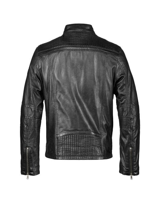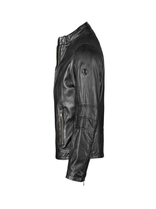 Откройте для себя современный стиль с нашей современной мужской кожаной курткой из высококачественной кожи. Эта куртка сочетает в себе функциональность и модный дизайн для современного требовательного мужчины. Рукава с молниями не только выглядят модно, но также обеспечивают гибкость и комфорт. Воротник-стойка на кнопках придает куртке оригинальный вид и обеспечивает дополнительную защиту от ветра и непогоды. Современная кожаная куртка Рукава на молнии, воротник-стойка Карманы на молнии Стойка воротник-стойка на кнопках Удобная посадка, прямой крой.