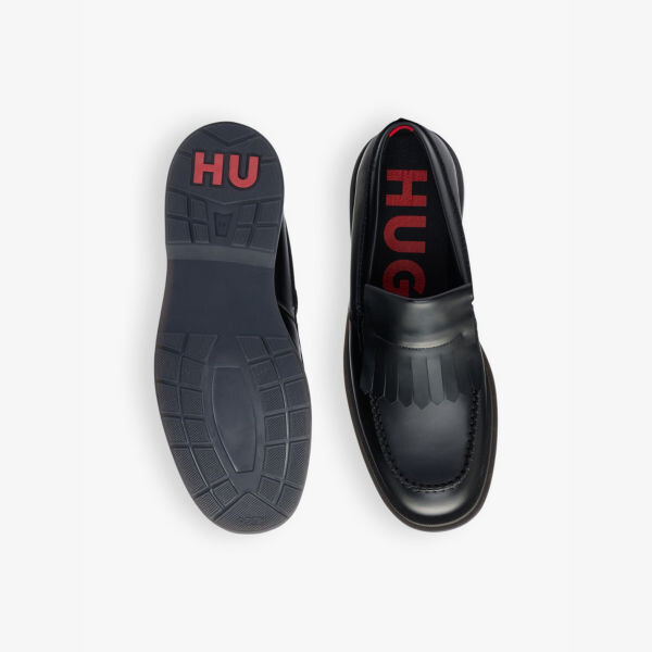 Плоские кожаные мокасины с кисточками Hugo, черный