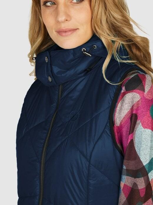 Идеально подходит для перехода: с длинным жилетом NAVIGAZIONE ваша следующая прогулка станет незабываемым событием. Благодаря закругленной спинке он идеально прилегает к телу. Вы можете сесть в машину спокойно и непринужденно — удобная двусторонняя молния делает это возможным. Черные элементы на ручках расположены по всей внутренней стороне и в проймах. Сумки чрезвычайно практичны благодаря надежной застежке-молнии. Двусторонняя молния Съемный капюшон Блестящий материал Скругленная спинка Длина спинки соответствует размеру. 38 = ок. 84 см.
