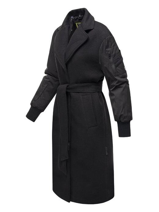 Переходное пальто впечатляет современной интерпретацией классического пальто. Сочетание материалов и свободные рукава расставляют стильные акценты, а завязывающийся ремень придает образу женственность. Идеально подходит для повседневного и элегантного образа. Переходное пальто с модным изменением стиля благодаря сочетанию материалов. Сочетание ткани, похожей на шерсть, и матового блестящего материала. Прямого кроя с возможностью застежки на талии. тесьма Многочисленные внешние и внутренние карманы и съемный капюшон Идеальная куртка для переходного периода (весна и осень)