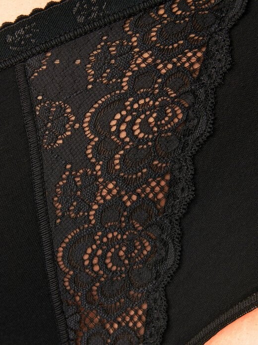 Бренд: Sloggi Цвет: черный Внешний материал: 85 % хлопок, 10 % полиамид, 5 % эластан Обычная стирка при 60°C Гладить при макс. 110 °C без пара Сушка в барабане при макс. 60 °C Нет. возможна химчистка Не отбеливать