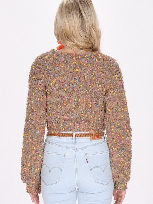 Этот укороченный свитер, выполненный из фактурного трикотажа, имеет круглый вырез и длинные рукава, что придает ему шикарный вид. Облегающий силуэт подчеркнут ребристые манжеты и низ. Пятнистый узор с помощью контрастных пятен придает глубину дизайну, делая его стильным дополнением к вашему гардеробу. Текстурный трикотаж для стильного образа Укороченный свитер с круглым вырезом Силуэт занавески для элегантного стиля Рубчатая ткань манжеты и подол для идеальной посадки Пятный узор для глубокого контраста.