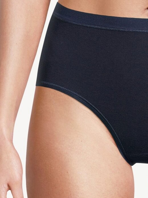 Эти трусы макси с тонкой ребристостью сохраняют форму и обеспечивают приятный комфорт при ношении. Благодаря плоской обработке края и отсутствию боковых швов трусы сидят ровно и не громоздятся. Идеально подходит для удобной посадки.