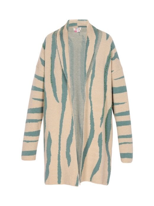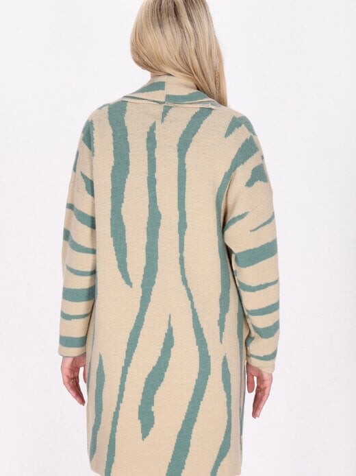 Этот открытый кардиган имеет свободную посадку и струящийся вырез без воротника, создающий непринужденный образ. Длинные рукава и подол длиной до середины бедра создают удобный силуэт. Этот кардиган с абстрактным органическим узором, напоминающим полосы, идеально подходит для повседневной носки. Отсутствие видимых застежек обеспечивает комфорт при ношении. Открытый кардиган свободного кроя Плывущий вырез без воротника Длинные рукава и низ средней длины Абстрактный узор в виде полосок