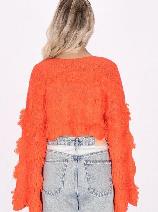 Этот стильный предмет одежды станет изюминкой вашего гардероба: короткий свитер впечатляет структурированным дизайном с бахромой на рукавах и подоле, которая придает ему игривый вид в стиле бохо. Широкий круглый вырез и слегка расклешенные манжеты подчеркивают свободный силуэт, а рельефные нити создают уникальный трехмерный эффект. Идеально подходит для тех, кто ищет повседневный, но шикарный образ. Структурированный свитер с бахромой Широкий круглый вырез Слегка расклешенные манжеты Уникальный трехмерный эффект
