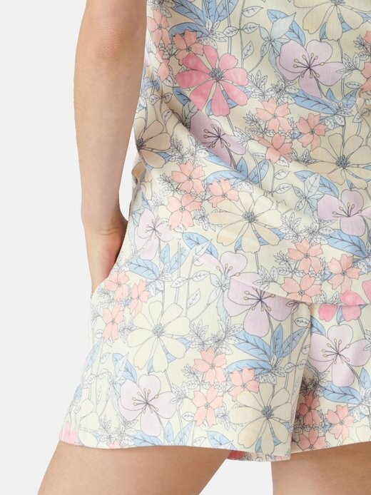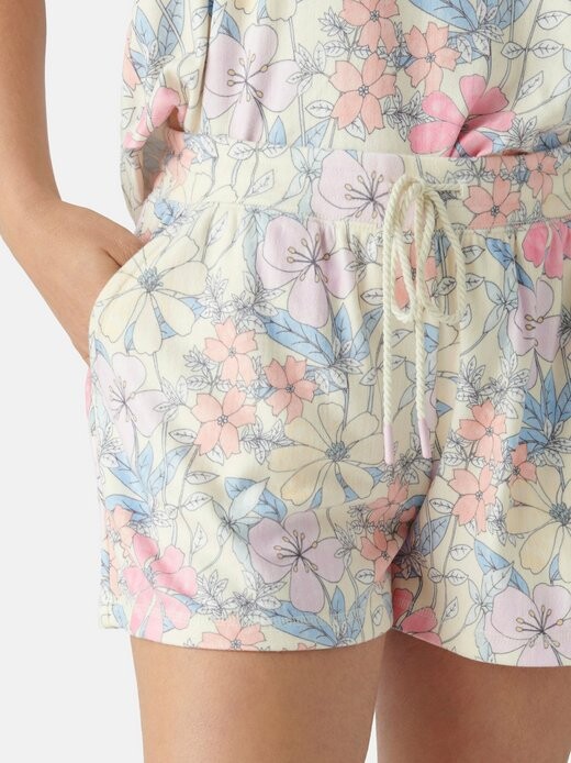 PJSalvage — это современный калифорнийский бренд образа жизни с девизом «Жить комфортно» и специализируется на роскошных товарах для сна и отдыха, стремящихся к комфортному и повседневному образу жизни. Мягкие ткани, красивые принты и внимание к деталям характеризуют продукцию. GARDEN DREAM пастельный цветочный принт удобные шорты трикотаж в стиле пуант с начесом удобная посадка