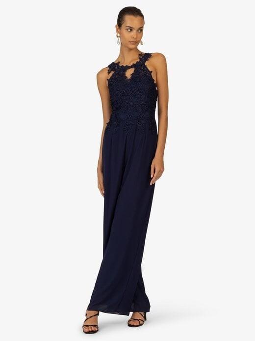 Этот кружевной комбинезон сочетает в себе элегантность и стиль благодаря кружевному лифу без рукавов и приталенной посадке. Широкие штанины брюк и изысканный вырез на спине делают их идеальным нарядом для вечеринок и стильных вечеров.