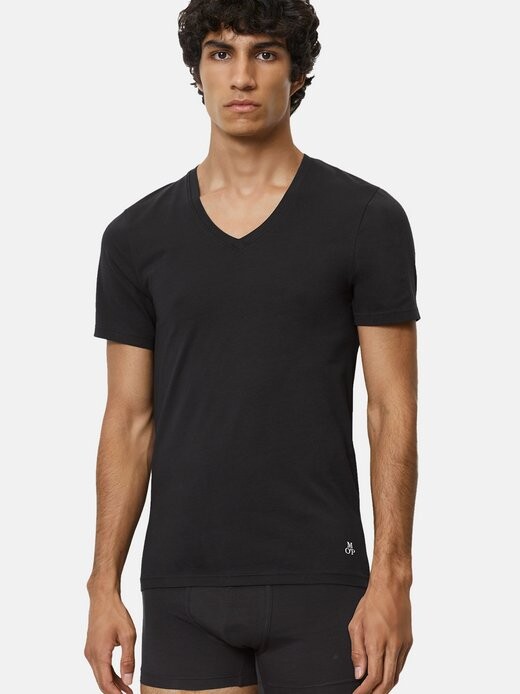 Эта мужская футболка облегающего кроя имеет современный V-образный вырез с ребристыми манжетами. Короткий рукав и прямой подол создают неподвластный времени и стильный образ. Контрастный принт на подоле добавляет яркий акцент. Эта рубашка, доступная в практичной упаковке по 2 шт., идеально подходит для повседневного ношения. Изготовлен из мягкой трикотажной ткани, гарантирует высокий уровень комфорта. Идеально подходящую для любого случая, рубашку можно комбинировать разными способами, и она быстро станет незаменимой частью вашего гардероба. Упаковка из 2 шт. Рубчатые манжеты на V-образном вырезе Прямой низ Контрастные цвета принт Облегающий крой
