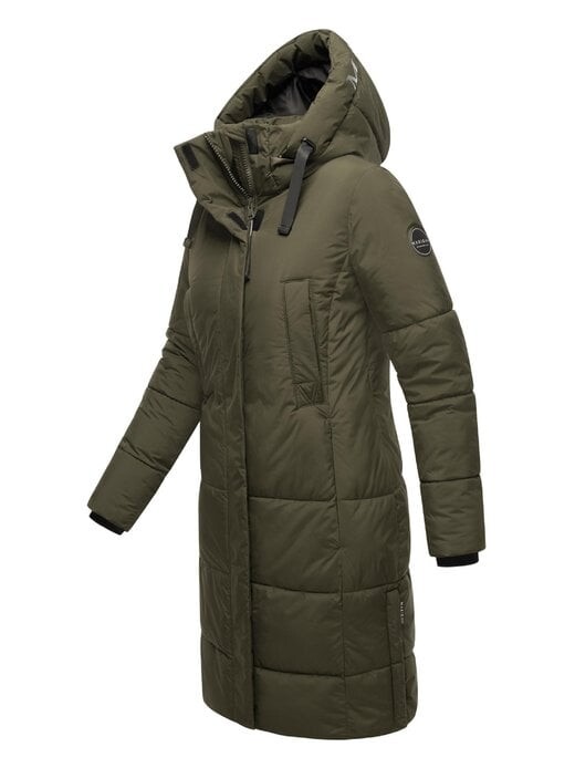 Современное зимнее стеганое пальто четкого прямого силуэта длиной до колен. Идеально подходит для стильных зимних дней, можно сочетать разными способами как с элегантными, так и с повседневными нарядами. Идеально подходит для холодного времени года (осени и зимы). Длинное стеганое женское зимнее пальто с капюшоном В основном изготовлено из более экологически чистых переработанных материалов Прямой крой до колен и разрезы Съемные и регулируемые. капюшон Многочисленные карманы