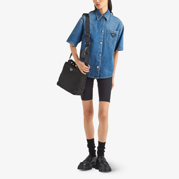 Джинсовая рубашка свободного кроя Brand-Plaque Prada, синий 155 907₽