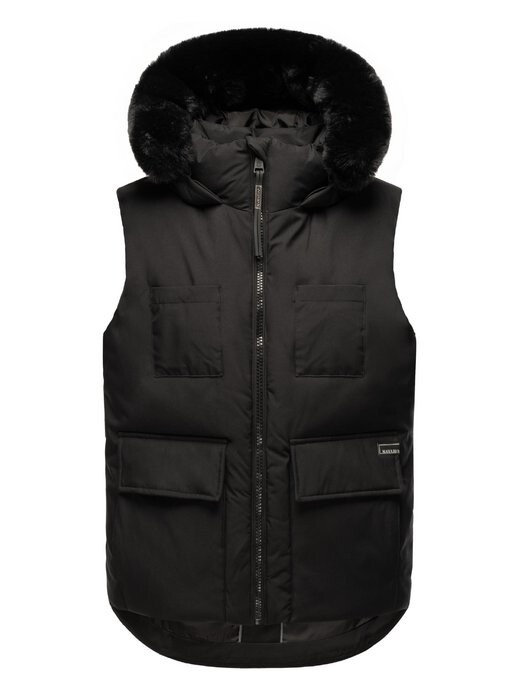 Современный зимний стеганый жилет отличается удобным кроем и практичностью. Он создает не только стильный, но и спортивный, элегантный стиль, который прекрасно сочетается с зимними нарядами. Женский стеганый жилет с капюшоном на теплой подкладке Внешний материал из переработанного ветроотталкивающего материала Прямой крой поверх куртки бедра Многочисленные карманы и светоотражающие детали Съемный искусственный мех для индивидуального стиля!