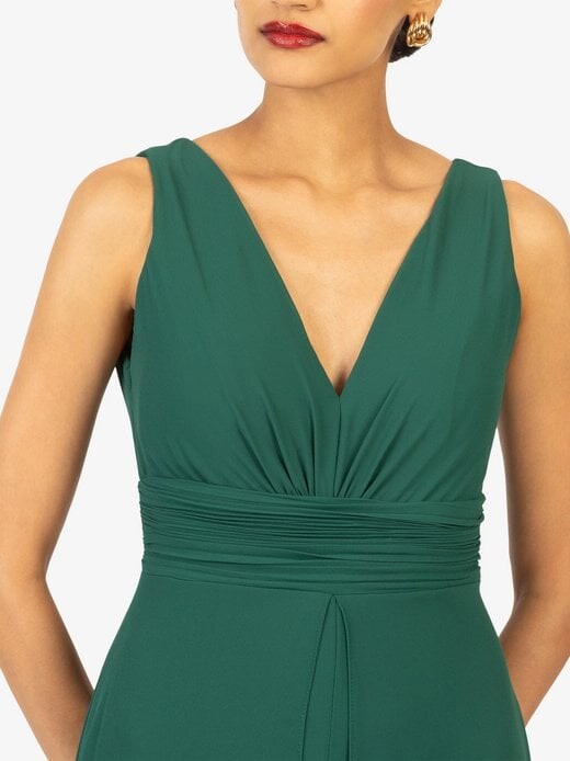 Комбинезон без рукавов с глубоким V-образным вырезом и сборками на талии, создающими привлекательный силуэт. Широкие штанины создают элегантный, но повседневный образ. Струящийся материал придает комбинезону легкость и воздушность, он идеально подходит для официальных мероприятий или летних мероприятий. Модный облегающий крой Глубокий V-образный вырез Молния по центру спины Без рукавов Мягкая на ощупь и на подкладке.