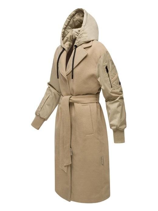 Переходное пальто впечатляет современной интерпретацией классического пальто. Сочетание материалов и свободные рукава расставляют стильные акценты, а завязывающийся ремень придает образу женственность. Идеально подходит для повседневного и элегантного образа. Переходное пальто с модным изменением стиля благодаря сочетанию материалов. Сочетание ткани, похожей на шерсть, и матового блестящего материала. Прямого кроя с возможностью застежки на талии. тесьма Многочисленные внешние и внутренние карманы и съемный капюшон Идеальная куртка для переходного периода (весна и осень)