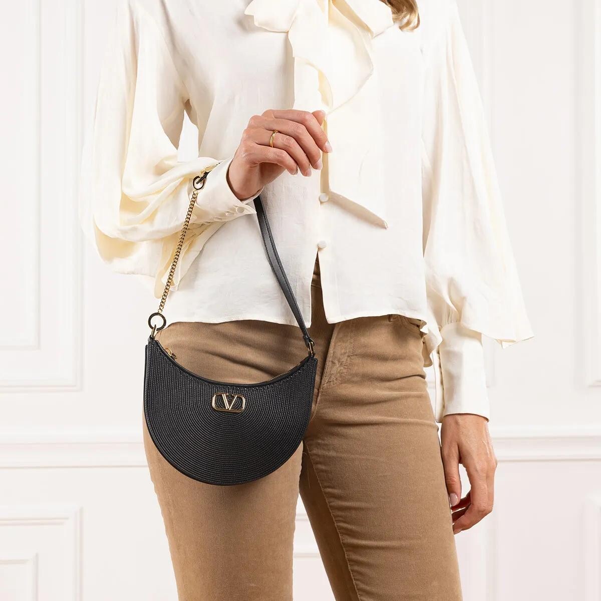 Роскошная и высококачественная мини-сумка Hobo Bag V Logo Signature Nero от Valentino Garavani станет идеальным спутником во многих случаях.