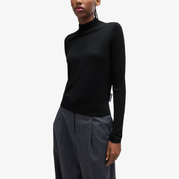 Шерстяной джемпер с высоким воротом и логотипом Hugo, черный