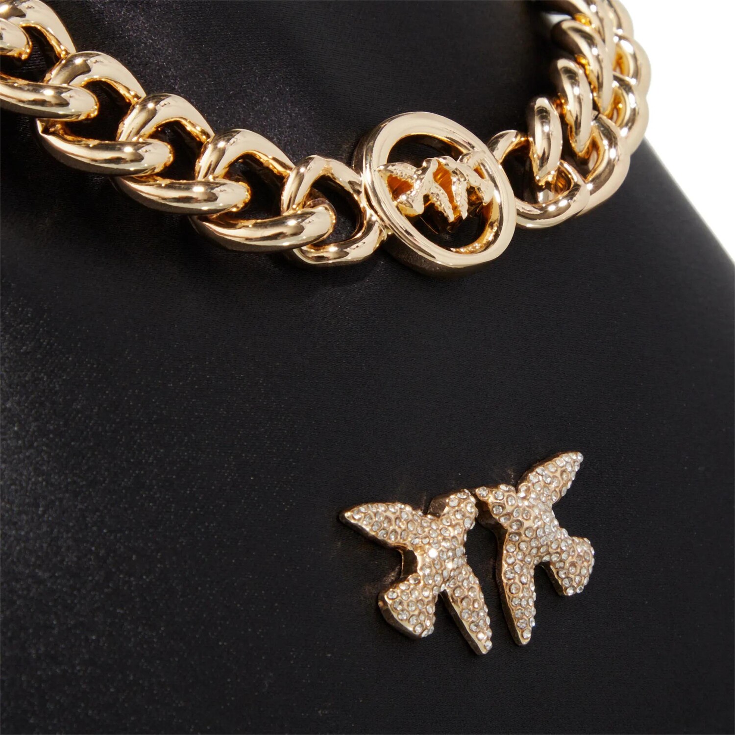 Украшен декоративными цепочками и модными металлическими деталями золотого цвета, а также гламурными драгоценными камнями