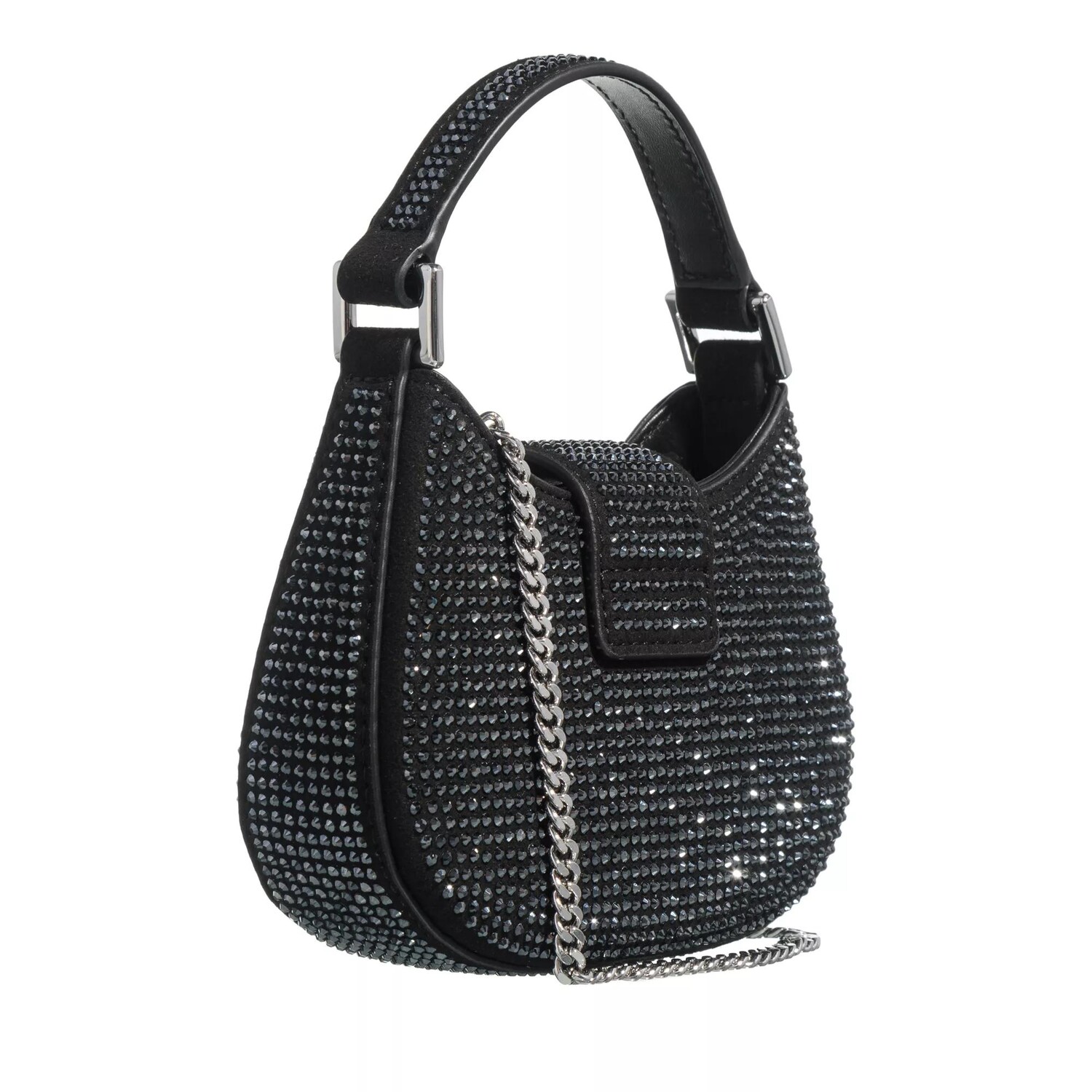 Микросумка со стразами и бантом в форме полумесяца Self Portrait, черный