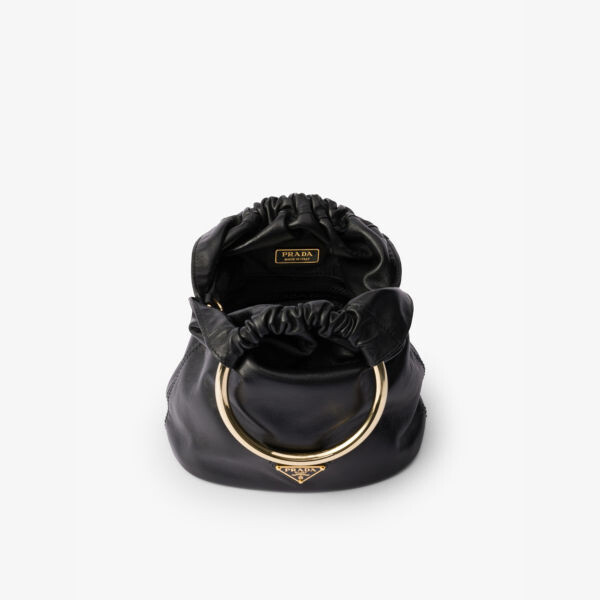Мини-Сумка-Ведро из кожи наппа с изысканной ручкой Prada, черный
