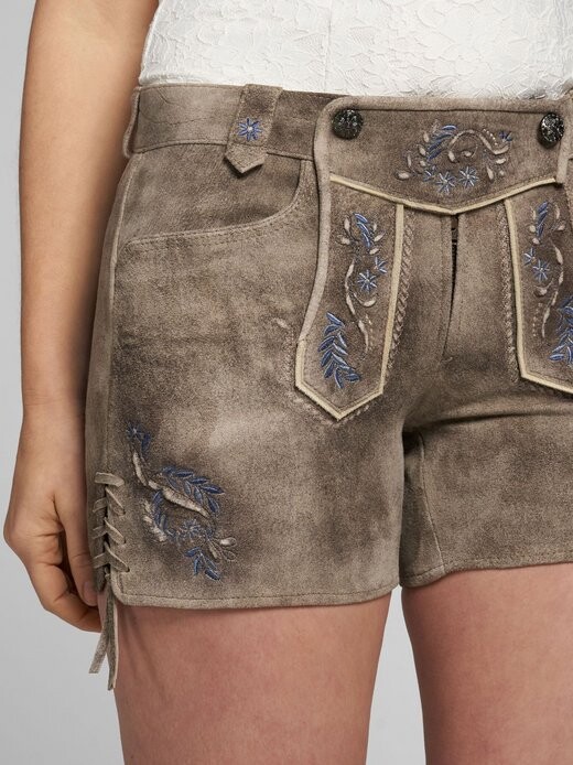 Эти кожаные брюки от Spieth & Wensky просто войдут в ваш гардероб! Вышивка с цветочным мотивом придает душевный дизайн. Шнуровка на ногах чудесно современна. Благодаря облегающему крою в этих брюках вы будете выглядеть великолепно, а чистая козья кожа не только прочна, но также визуально элегантна и удобна в носке. В сочетании с традиционной блузкой и обувью в тон эти кожаные брюки превратят любой традиционный наряд в изюминку. Модные кожаные брюки Привлекательная вышивка контрастного цвета Ленты на манжетах ног Красивая кожа цвет Комфорт при длительном ношении