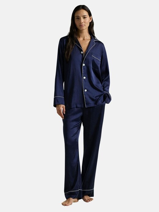 Пижама Heritage Silk с длинными рукавами от Polo Ralph Lauren по-настоящему элегантна и роскошна. Он изготовлен из шелка и имеет функцию регулирования температуры. Всегда будьте готовы к естественному и элегантному сиянию. Этот пижамный комплект идеально подходит для любого случая.