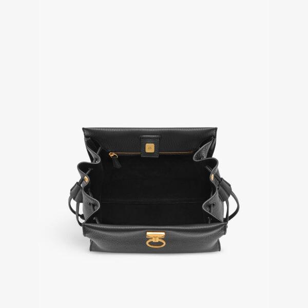 Тканые верхние ручки, регулируемый/съемный плечевой ремень, замок Keystone с магнитной застежкой, съемный брелок с тисненой фольгой подписью, две боковые завязки для регулировки объема и формы, одно основное отделение, внутренний накладной карман и карман на молнии, тисненая фольгой подпись Mulberry, замшевая внутренняя подкладка