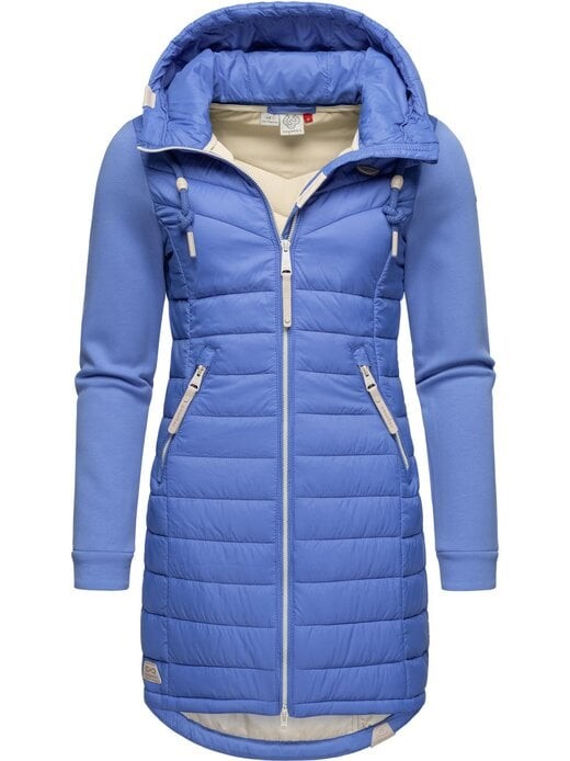 Модное женское пальто-переходник с капюшоном из великолепного микса материалов и стройной легкой талией - идеально для переменчивого переходного периода (весна и осень) и для спортивного активного отдыха. Женское стеганое пальто из современного микса материалов материалы Удобный нескользящий внешний материал и мягкие рукава Слегка скроенное пальто длиной до ягодиц Высоко застегивающийся воротник с защитой подбородка сохраняет тепло Отличное стеганое пальто для переменчивого переходного периода
