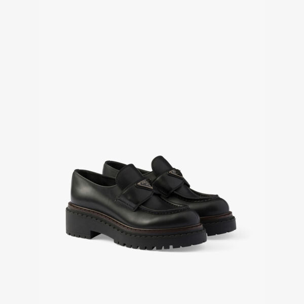 Кожаные мокасины с двойной шоколадной фирменной табличкой Prada, черный