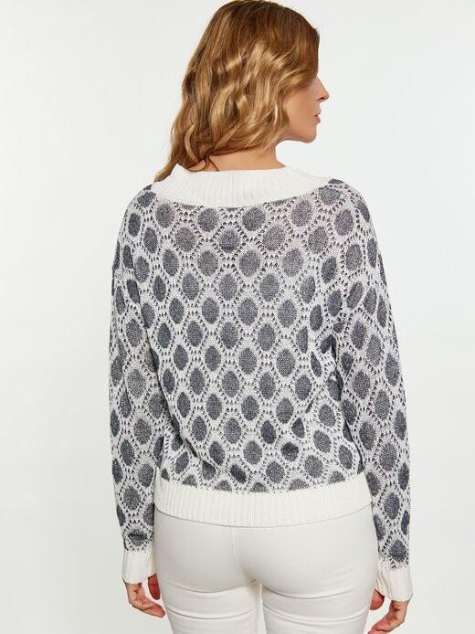 Представляем идеальное дополнение к вашему гардеробу: женский свитер с V-образным вырезом стильного вязаного узора с повторяющимися мотивами. Длинные рукава и ребристые детали на вырезе, подоле и манжетах обеспечивают хорошую посадку и дополнительный комфорт. Этот свитер, выполненный из тонкой трикотажной ткани, отличается стилем и комфортом. Ажурный узор длинные рукава V-образный вырез ажурная ткань Ажурный узор длинные рукава V-образный вырез ажурная ткань