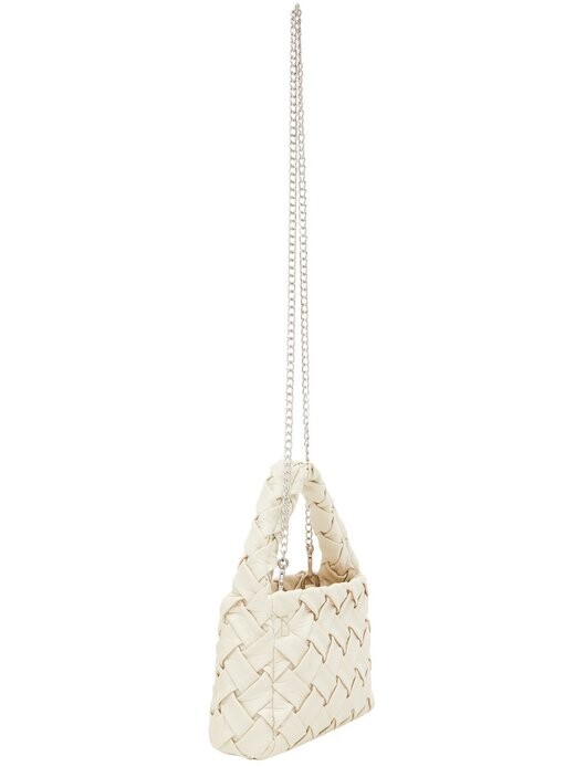 Сумка имеет уникальную тканую текстуру с переплетающимся узором, создающим стеганый эффект. Мягкая, мягкая структура и толстая ручка, также украшенная тем же тканым узором, создают гармоничную эстетику. Ручка перемещается из стороны в сторону, обеспечивая удобный захват для удобной переноски. Сумочка с уникальным узором плетения Мягкий текстурированный дизайн Толстые ручки для удобного ношения Прямоугольная форма, слегка сужающаяся к верху