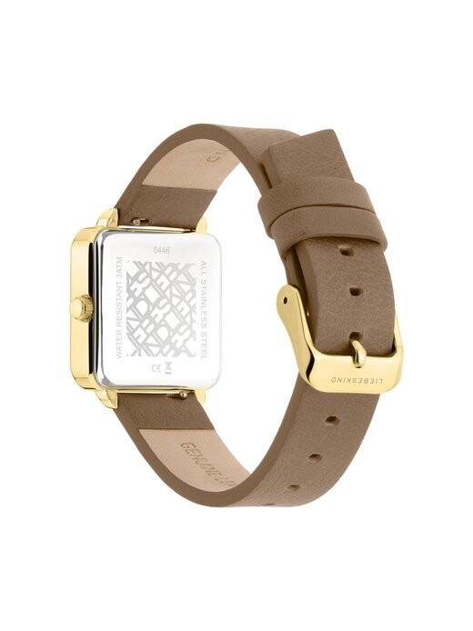 Женские часы с тремя стрелками от бренда LIEBESKIND BERLIN с квадратным корпусом из нержавеющей стали и высококачественным кожаным ремешком.