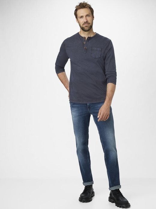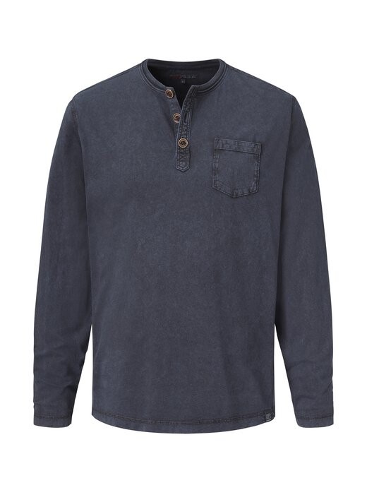 Рубашка из одинарного джерси с длинными рукавами, круглым вырезом и пуговицами имеет стандартную посадку. Это модно и повседневно, сделано из хлопка. Помимо высококачественной обработки, в комплект поставки также входят три пуговицы и нагрудный карман. Независимо от времени года – эту рубашку с длинными рукавами можно гибко комбинировать, она станет стильной основой для образа для отдыха. Рубашка с длинными рукавами стандартного кроя Круглый вырез на 3 пуговицах Чистый хлопок Превосходный комфорт при ношении Одинарная рубашка из джерси