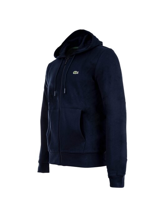 Толстовка мужская с капюшоном от бренда LACOSTE. Ворсовый флис из смеси органического хлопка, молния и карман-кенгуру, типичная для бренда аппликация в виде крокодила.