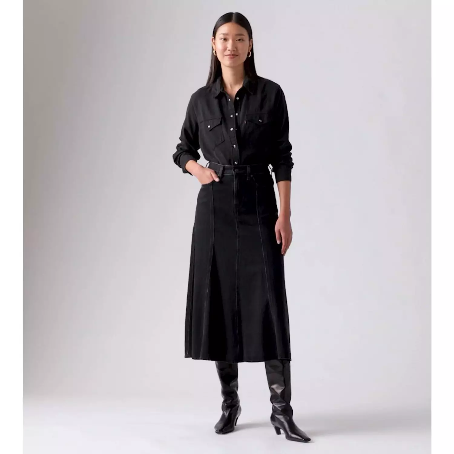 Ностальгический продукт, созданный на данный момент. Наша юбка Fit and Flare с легкой высокой посадкой узкая в талии и бедрах и расширяется, создавая струящийся силуэт. Затем мы уточнили швы, чтобы создать ощущение ретро.