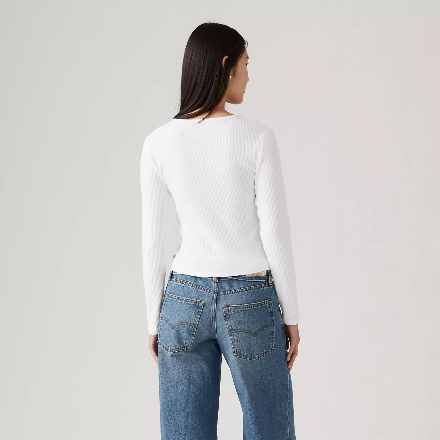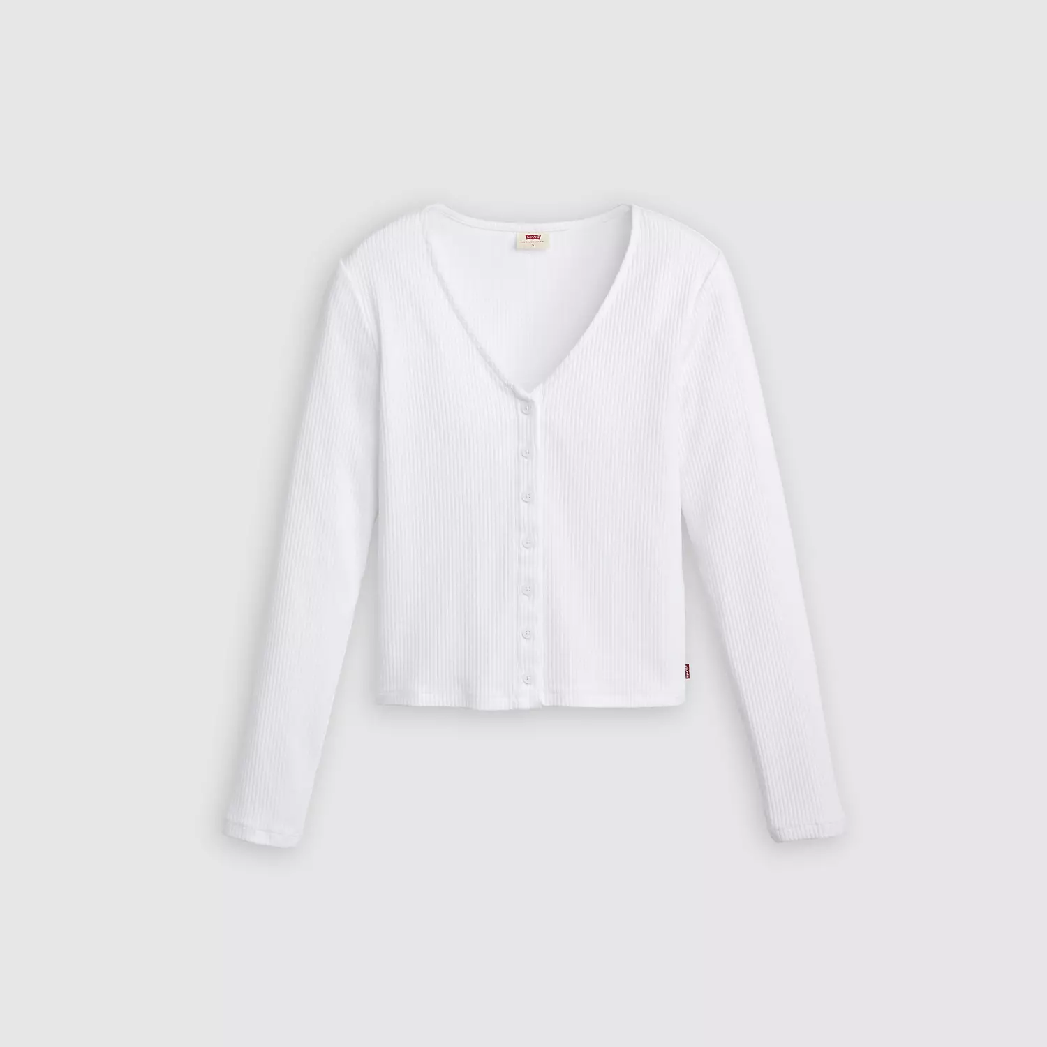 Нам нравится топ, который умеет все. Отчасти кардиган, отчасти повседневный трикотаж. Наша футболка с длинными рукавами Muse отличается привлекательным V-образным вырезом, застежкой на пуговицы спереди и облегающим кроем, подчеркивающим фигуру.