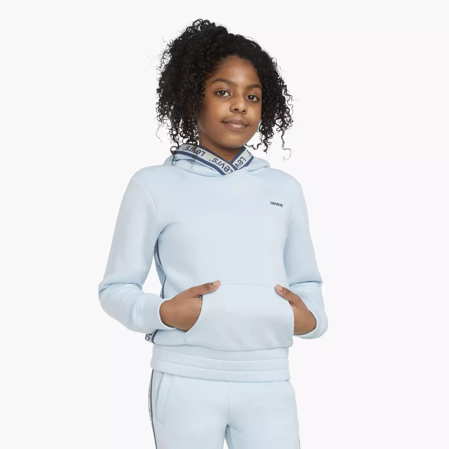 Эта удобная толстовка Levi's станет незаменимым помощником в приключениях этого сезона. Он имеет стильный капюшон и фирменные ленты по бокам, карман-кенгуру для предметов первой необходимости, эластичный низ и ребристые манжеты для плотного и уютного прилегания.
