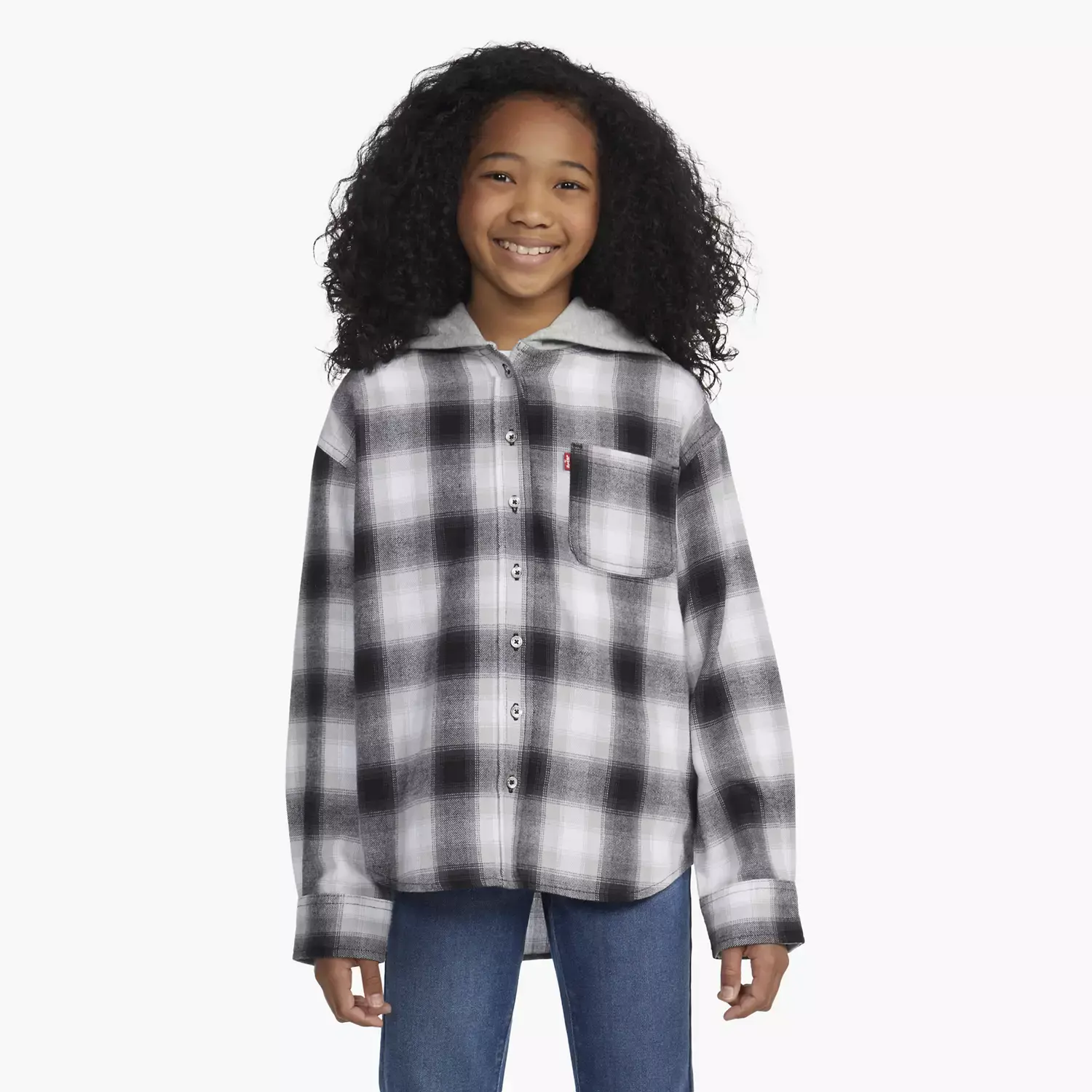 Тканый топ Levi's с капюшоном — это что-то среднее между толстовкой и клетчатой рубашкой. Эта удобная рубашка на пуговицах, вдохновленная классической рубашкой в стиле вестерн, изготовлена из мягкой фланели и дополнена уютной махровой толстовкой с капюшоном и непринужденной посадкой.