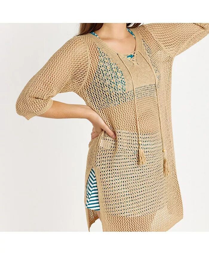Женское пляжное платье, связанное крючком Calypsa, бежевый