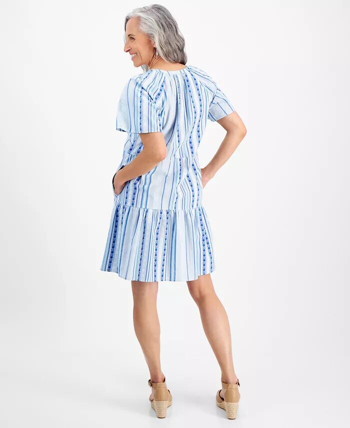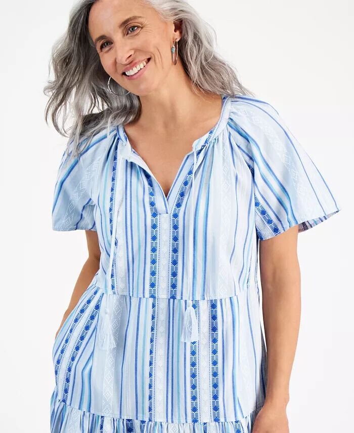 Развевающиеся рукава и завязки с кисточками придают очаровательный вид этому миниатюрному хлопковому платью от Style & Co. Многоярусный дизайн создает игривый силуэт.