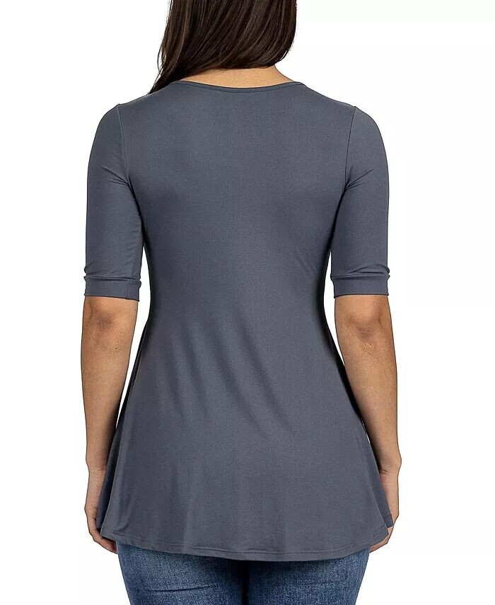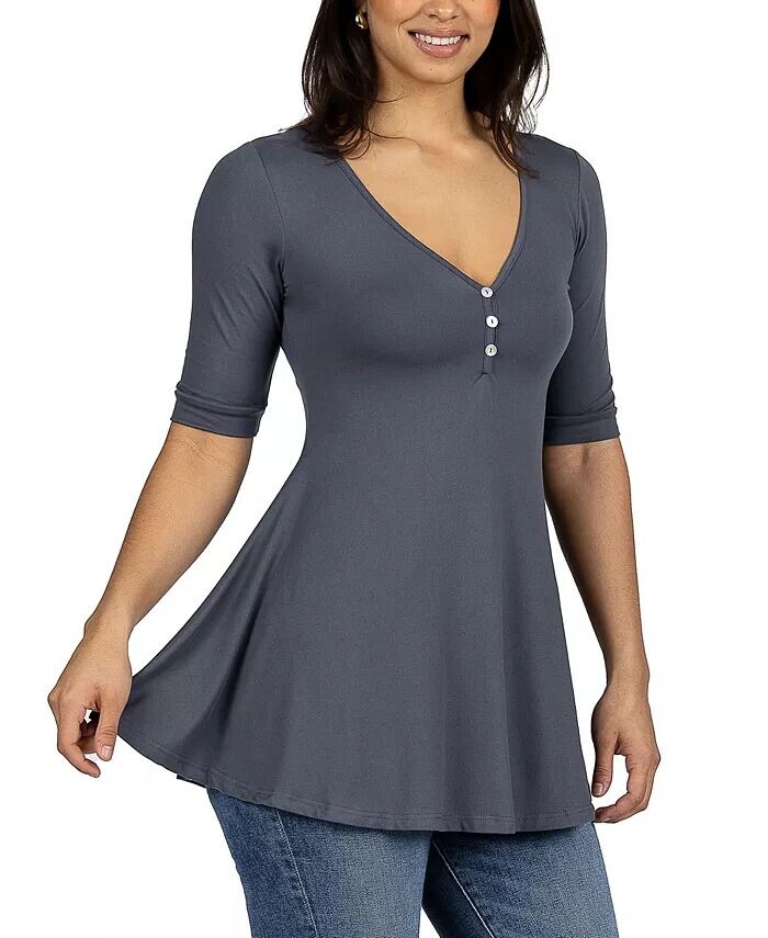 Прибл. Рост модели 5 футов 9 дюймов, размер на ней: Маленький От шеи до подола: 33 дюйма V-образный вырез Пуговицы на пуговицах Рукава до локтя Расклешенный крой Верх-туника с рукава Топ-туника с длинными рукавами Топ-туника с длинными рукавами Женский топ для работы Полиэстер/спандекс Пригодна для машинной стирки