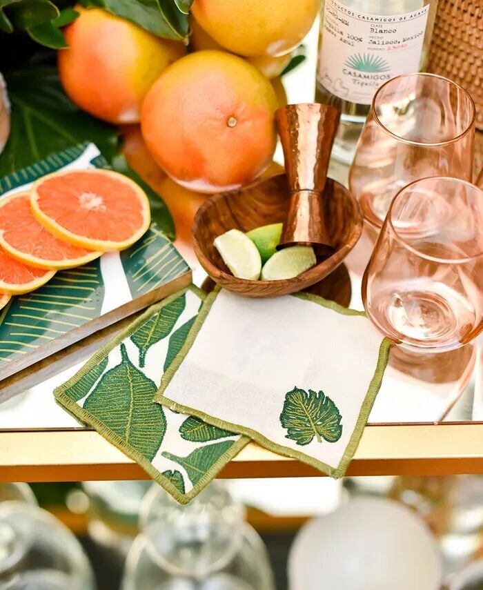 Отпразднуйте лето с коктейльными салфетками, передающими красоту тропических пальм. Этот набор предлагает альтернативу одноразовым салфеткам. Он имеет прошитую зеленую кайму, мягкую хлопчатобумажную и льняную ткань и вышитый пальмовый лист, который гармонично сочетается с остальной частью нашей коллекции Palm.