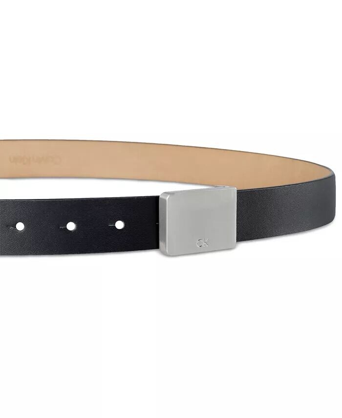 Гладкая пряжка с металлической пластинкой придает этому ремню Calvin Klein изящный и современный вид.