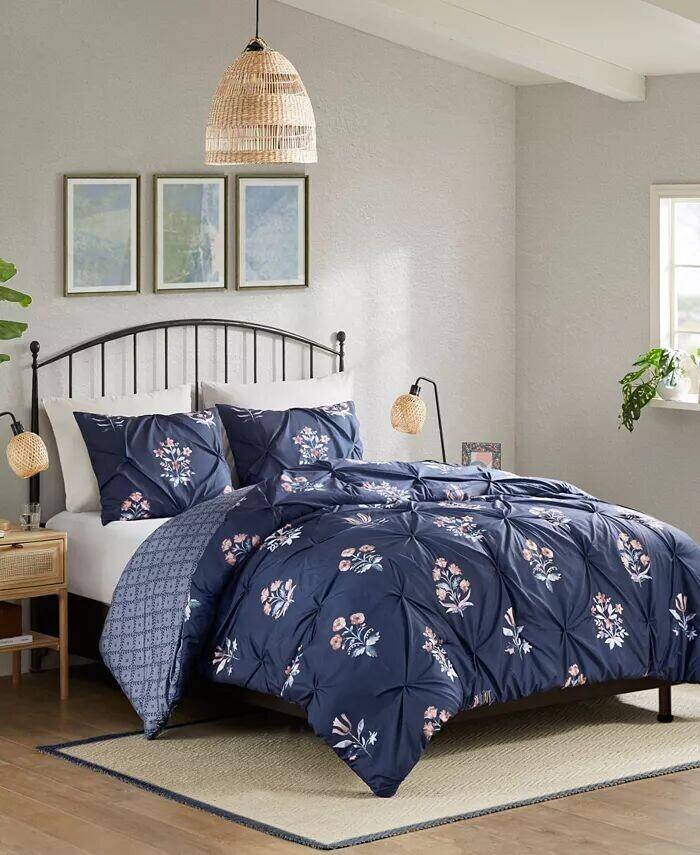 Этот комплект пододеяльников из микрофибры с цветочным принтом на твердой основе, выполненным в технике защипов, излучает современный стиль фермерского дома и добавляет нотку элегантности в любую спальню.