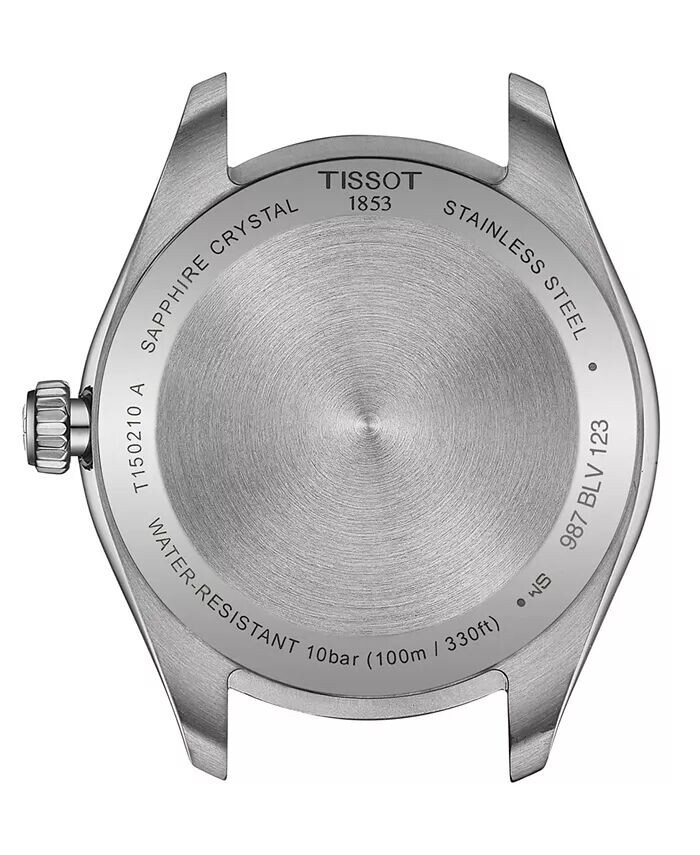 Сапфировое стекло обеспечивает антибликовую защиту минималистского циферблата часов Tissot из коллекции PR 100. Стиль #T1502102611100