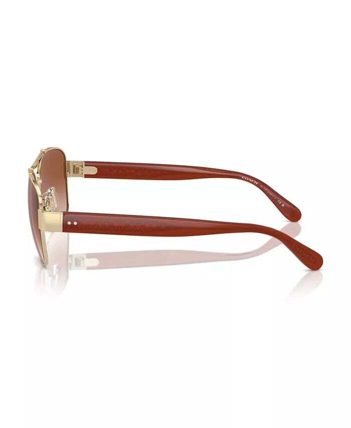 Подчеркните свой стиль с помощью солнцезащитных очков Coach CR617, идеального сочетания элегантности и изысканности. Металлическая оправа блестящего светло-золотого цвета дополняется седельной перемычкой и коричневыми градиентными линзами, придавая этому неподвластному времени дизайну нотку современности. Эти оттенки обеспечивают комфорт и долговечность, позволяя носить их в течение всего дня.