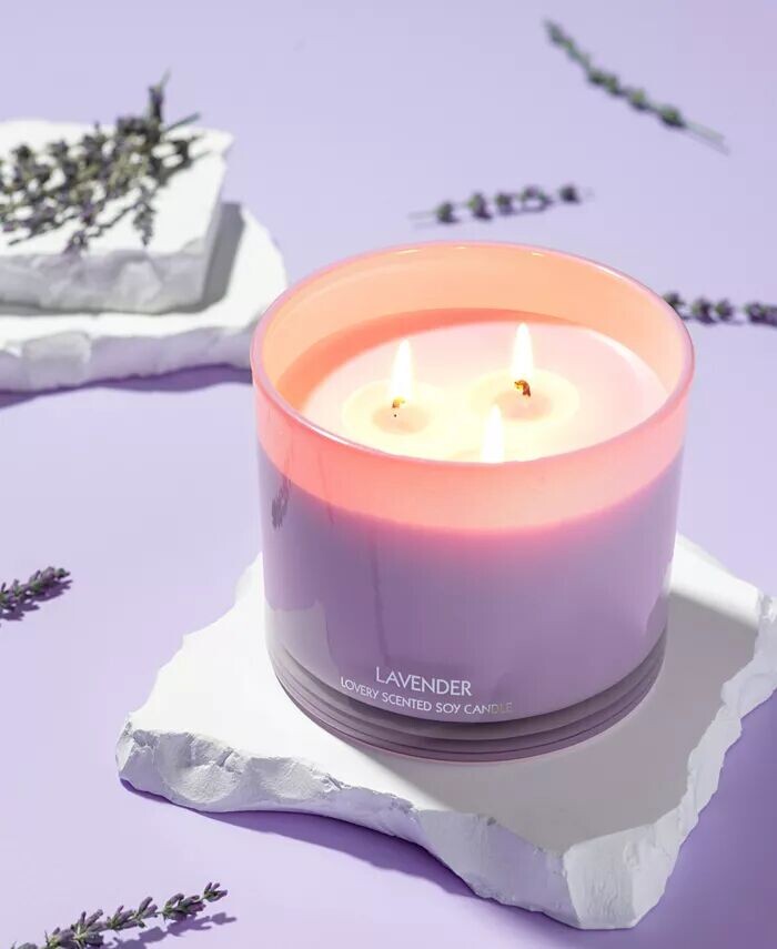 Соевая свеча Lavender с 3 фитилями, 13 унций Lovery, белый